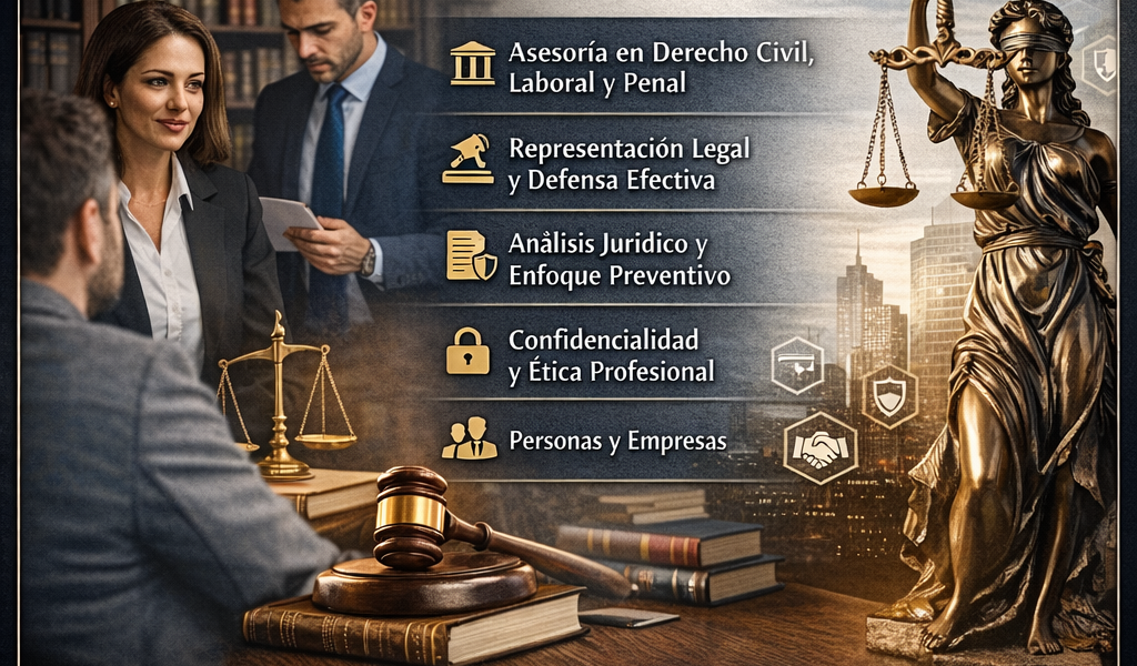 Skills: Asesoría legal integral / Representación jurídica / Análisis normativo / Resolución de conflictos / Derecho civil, laboral, comercial y penal